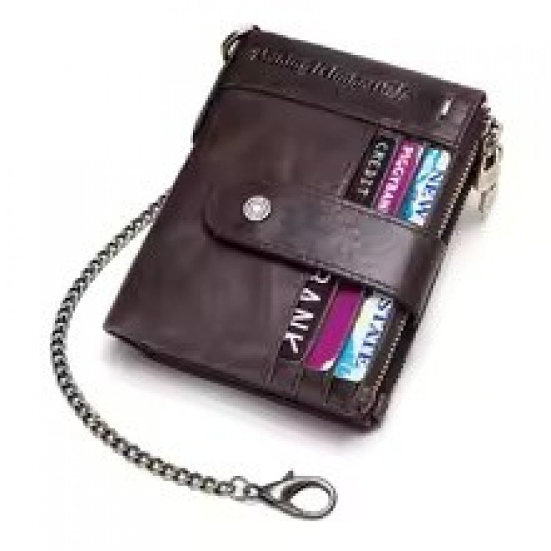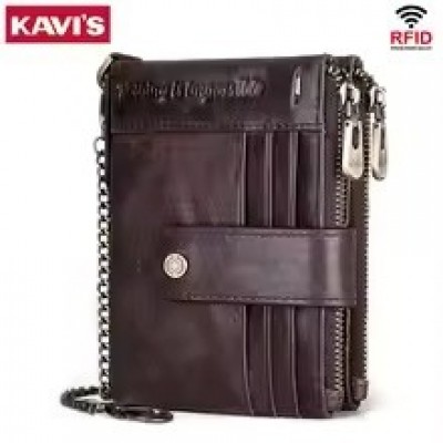 Men's Casual Genuine Leather Wallet RFID Blocking Credit Card Holder with Zipper Coin Pocket, High Quality Bifold Wallet R$62.0 |